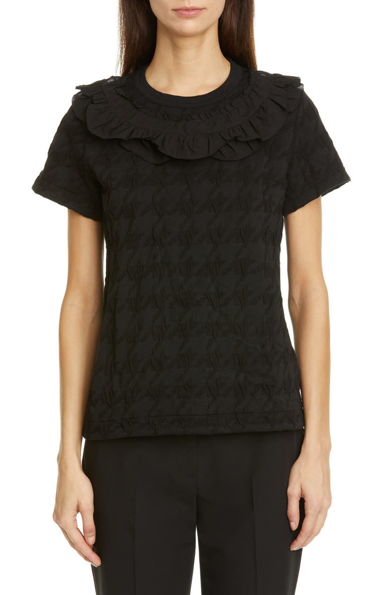 Tricot Comme Des Garcons Ruffle Neck Houndstooth Jacquard T Shirt Nordstrom