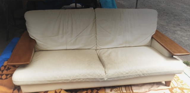 カリモク社 アイボリーの本革ソファー リペアで綺麗にお化粧直し バッグ ソファ等 革製品の染め直し クリーニング リペア 修理 東京 さいたま市 レザードックわたなべ