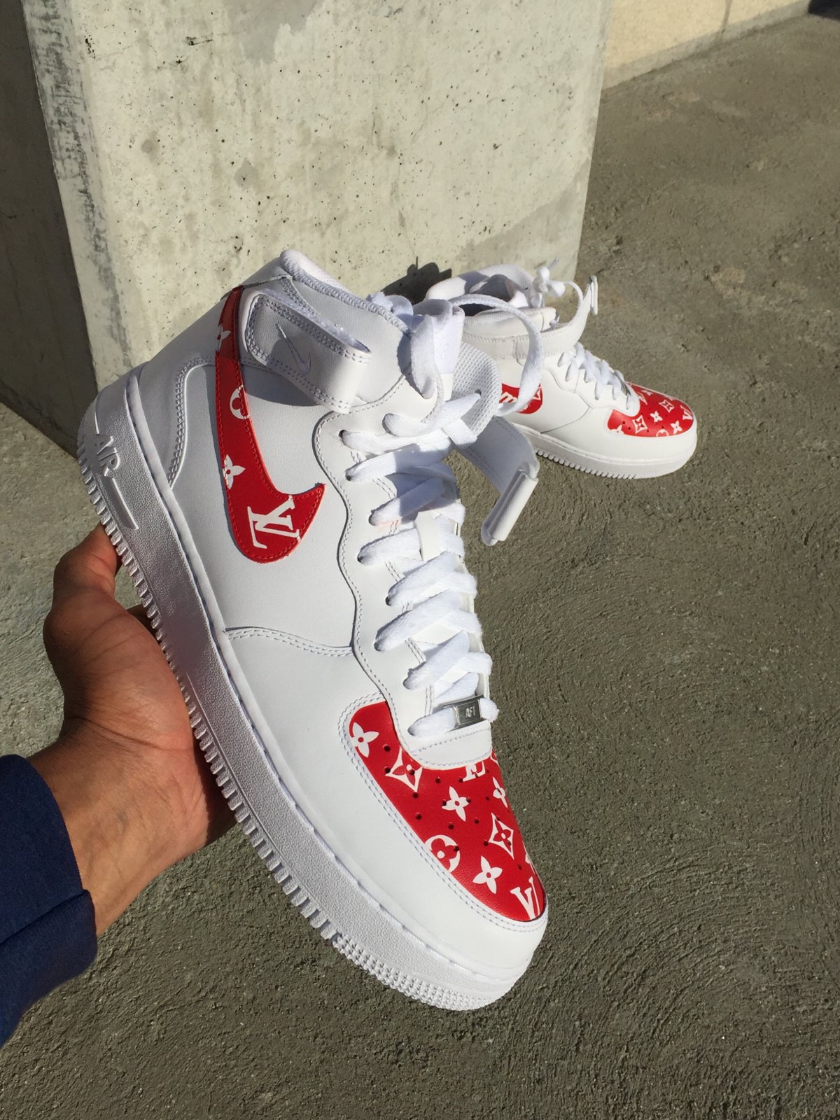 Die Besten Tropfen Rot Louis Vuitton X Supreme Nike Air Force Etsy Nike Air Shoes Supreme Shoes Nike Shoes Air Force