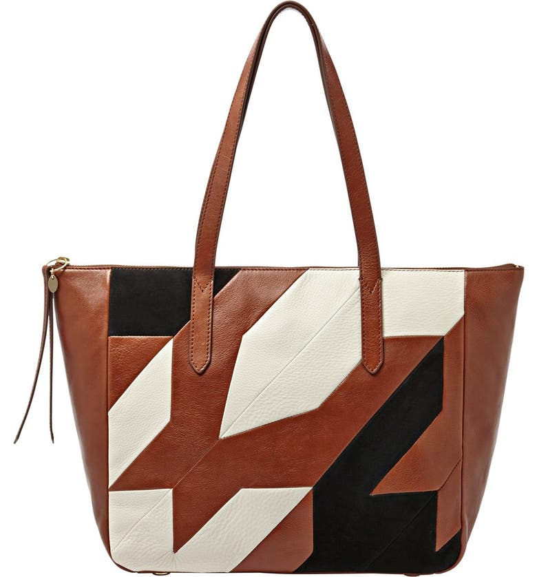 Fossil Sydney Leather Patchwork Shopper In Brown Lyst