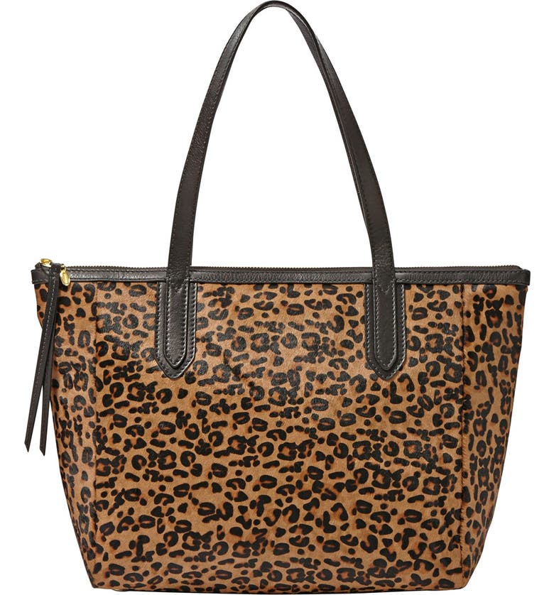 New For Winter Fossil Sydney Black Cheetah Calf Hair Leather Shopper Tote Bag Uber Surf