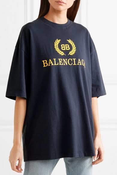 Navy Oversized Printed Cotton Jersey T Shirt Balenciaga Net A Porter
