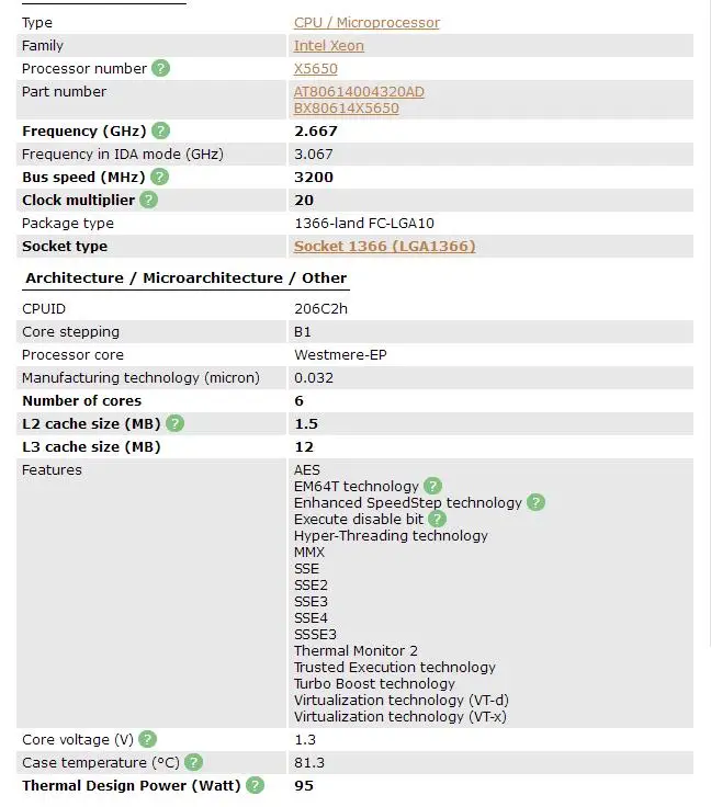 Amazon Com Intel Xeon X5650 Cpu 2 66ghz 12mb 6 4gt S Hexa 6 Core Server Processor Slbv3 Computers Accessories