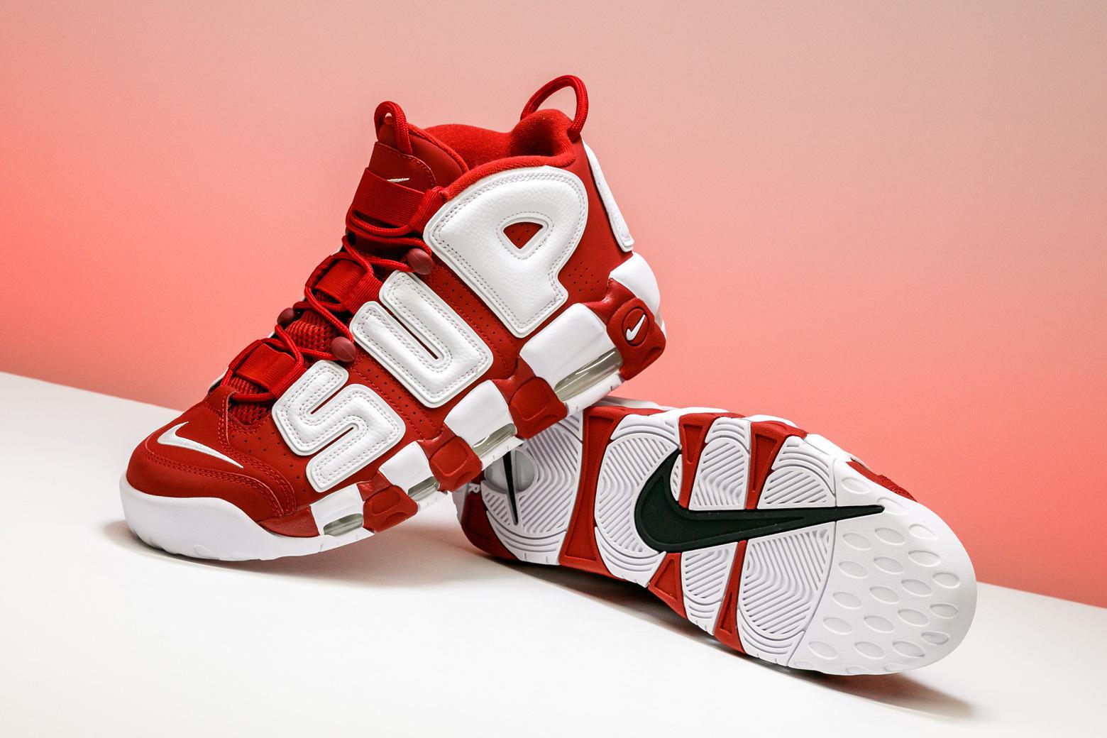 Supreme Nike Air More Uptempo Red White Sneaker Bar Detroit